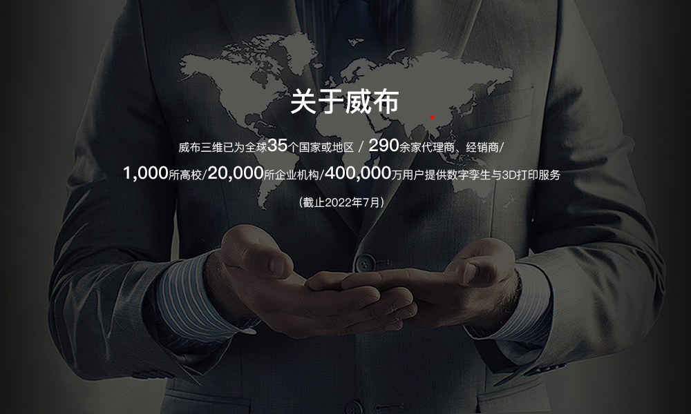 威布三维是中国领先的数字孪生与3D打印解决方案供应商,专注于制造、教育、医疗、科研、文旅、食品等领域,致力于通过高科技产品打造数字世界与物理世界的桥梁,提供元宇宙的数字基建方案。迄今为止威布三维已在全球35个国家和地区,为约20000所企业机构,数十万的用户提供专业的解决方案与服务。
